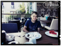 Отдыхали в августе 2014г семьей с ребенком 11лет. С русским языком не особо в этом отеле, парень на ресепции немного понимает, а в целом персонал не говорит. Ну начнем с начала с заселения, как и в большенстве отелей после 14.00, приехали рано утром оставили чемоданы на ресепции и задали вопрос , где можно переодется... Как оказалось нигде...Далее предложили пойти на завтрак, ресторан находится в низу если не ошибаюсь этаж -3 Завтраки практически каждый день однообразны, блинчики с шоколадом-самое вкусное. В целом по еде все ок, мясо - говядина, баранина, курица и во время обеда и ужина в различных вариантах. Рыба также была, но не часто. По напиткам стандарт-набор кола, фанта, спрайт, швепс-очень нравилось, что наливали из упакованных бутылок, а не из бочки. Пиво Эфес, вино красное, белое, ракия и водка. Из отдыхающих много турков, затем европейцы, ну и русские-совсем мало. Все в целом не плохо, если бы не пляж-главный минус отеля! Пляж на территории отеля Амброзия, идти вниз пешком по горостой месности вперед метров 800-900, а вот назад очень устаешь... От отеля ходит бесплатная маршрутка, но рассписание неудобное, и плюс собирает народ с других отелей. Погода постоянно ветренная, море 22-24гр. В августе уже конец сезона, по вечерам и с утра было прохладно. Теперь о Бодруме город очень дорогой, экскурсии в отличии от других курортов стоят значительно дороже. Поэтому если вам нравится чисто отельный отдых с бассейном вместо моря, то вам сюда, если же нет, то рассматрите береговые отели типа Амброзии!