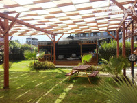 Идем дальше, в отеле 2 корпуса, но ресторан работает только в главном. Меню разнообразное, не буду лишний раз повторяться, но выбор десертов большой и мяса хватает, также давали черешню и виноград, много йогуртов. А вот с официантами просто беда (большинство из них молодые пареньки с деревни), они еле волочат ноги, и часто просто проходят мимо, не замечаю грязной посуды. Не раз видел ситуацию, когда отдыхающие с тарелками не знали куда сесть, места как бы есть, но не убранный стол не позволяет этого сделать. Приходится ловить официанта за руку и просить все убрать. А в основном большом зале то иногда работали только 2 человека. В последние дни я видел, как их начальник давал им взбучку и даже сам убрал несколько столов, да и когда он привел еще троих, стало конечно легче. Пользоваться можно инфраструктурой обоих корпусов.