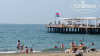 Территория немаленькая, но отдохнуть , кроме как на лежаках и стульях негде, нет зон с топчанами или пуфиками. Основной бассейн меньше, чем в других отелях, где мы были. Лежаков возле него не так много, поэтому все тусуются возле олимпийского, там же детский 35 см и детский с горками . Горки взрослые веселые, но рано закрываются. Плюс длинный. Всегда находили 1-2 лежака, нам больше не надо. Посередине есть детская площадка. Бары с одной стороны, поэтому с другого конца далековато, берите воду с собой. Лежаки хорошие новые. В маленьком бассейне для детей откалывается на дне плитка, нагрузки там нет, просто плохо приклеена. Заметили, когда мелкий собирался пообедать плиточкой…ноги не резали, так что только чтобы не нашли и не съели надо следить. Ремонтировать надо качественно. Душ возле олимпика есть и раздевалки. На выходе с пляжа тоже ополоснуться и ноги помыть, но опять же 1 и с 1 края. Люди имейте совесть, если вы уходите больше чем на полчаса, «не забивайте» лежаки, кто-то днем не может час полежать, т.к. везде загорают только вещи и полотенца.