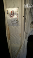 На матрасах нет как в других отелях чехлов, которые стирают перед сезоном. Собственно и шторы( на фото) принято стирать и влажную чистку ковролина делать. Этот кошмарный текстиль не стирали и не чистили ни разу. Учитывая, что простынь меньше, чем 2 сдвинутые кровати, края под матрасы со всех сторон не доставали. Получалось, что ночью, чуть перевернулся и вместо простыни уже лежишь лицом на вонючем матрасе, пропитанном всеми возможными жидкостями, как биологическими человеческими, так и другими…( фото)