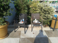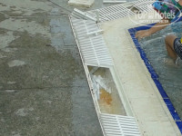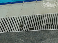 Из-за ситуации на пляже, мы свой табор постоянно размещали у бассейна и к морю близко и под соснами лежать приятно (не на островке). Конечно с уборкой тут тоже не айс, но все же хоть изредка шваброй и веником проходили. Купаясь в бассейне, уча плавать младшую, обратили внимание, что единственная стенка, которая не вся в воде, покрыта плотным слоем жира вот тут и говори, что ищешь недостатки, когда они тебе сами в глаза лезут.