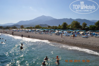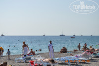 Общее впечатление от гостиницы хорошее, большой пляж с пирсом.Лежаков хватает всем даже если вы пришли поздно, то надо только подойти к пляжному человеку и он принесет вам лежаки.Очень много места и у бассейнов, так что лежаков всем хватает.Море кристально чистое, просто - мечта , а не водичка!