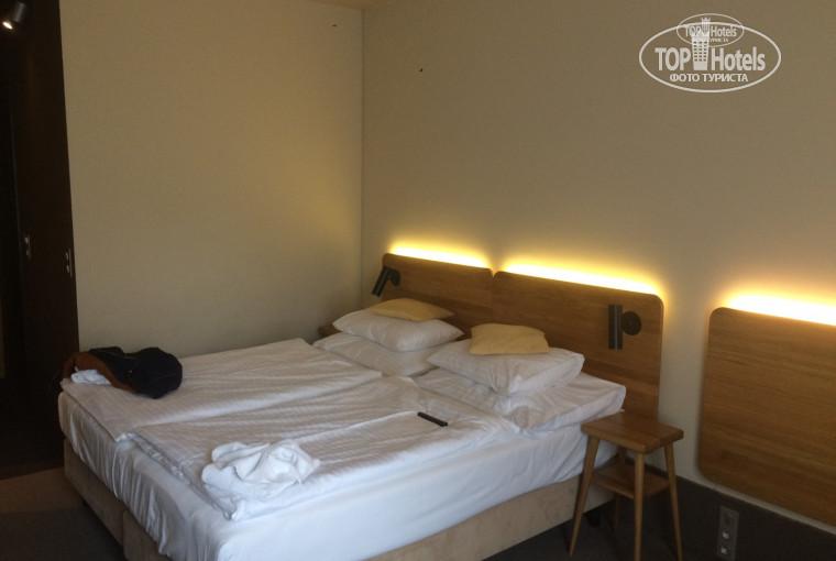 Приехали в отель рано утром. Молодой человек на ресепшен не говорил по русски, мы очень слабо владеем английским, тем не менее легко друг друга поняли. Заселение после 14:00. Оставили багаж в камере хранения (бесплатно), поехали в центр на трамвае №9 (остановка в двух минутах ходьбы от отеля, транспорт ходит часто) До Вацлавской площади 20-25 минут езды. На наш взгляд вполне приемлемо. Вернулись в отель ровно в 14:00, подошли к стойке, получили ключ-карту от номера в корпусе D. Администратор жестами, подкрепленными английским, объяснил, что нужно выйти на улицу и обойти здание слева, там и находится наш корпус. Там всё понятно, не заблудишься. Войдя в корпус оказываемся на втором этаже, наш номер был на первом (особенности ландшафта) В корпусе есть стеклянный лифт, так что чемоданы по ступеням тащить не придется, да и поднимаясь-опускаясь на лифте, можно смотреть на парк. Номер нам достался большой, с двуспальной кроватью (сдвинутые односпальные кровати, но стык особо не чувствовался), еще одним пустым местом под односпальную кровать и диванчиком. Возможно нам повезло, т.к. мы успели заселиться вперед большой группы туристов. По видеообзорам на ютуб знаю, что есть совсем маленькие номера. В номере небольшой шкаф в прихожей со встроенным сейфом (бесплатно), штанга с вешалками для верхней одежды. Санузел совмещенный, душевая просторная, но дверь прилегает не плотно, вода протекала на пол, освещение хорошее, большое зеркало на стене + увеличивающее зеркало на подставке на полке, электрический полотенцесушитель, 2 больших полотенца, 2 маленьких. Гель для душа, мыло, шампунь, молочко для тела пополняли. Также есть фен, но его работоспособность и мощность не проверяли. Тапочек и халата нет. Кроме того в номере чайник и 2 чашки, чай и кофе в пакетиках тоже пополняли. Есть 2 стеклянных бокала для вина. Есть мини-бар, он же холодильник. Кроме того, небольшой стол, один стул и зеркало в полный рост на стене. В комнате, как и в сан.узле, хорошее освещение, несколько источников света. Вид из окна на парк, при открытом окне слышно как щебечут птицы. Телевизор показывал 3 русских канала: Россия 24, Планета РТР и Шансон ТВ и еще несколько каналов на других языках. Вся мебель новая, не обшарпанная, на полу свежий, чистый ковролин. Уборка в номере ежедневная, качественная, постель поменяли на 2-3 день, полотенца меняют когда оставишь их на полу. Завтраки шикарные: яйца вареные и жареные, бекон, несколько видов сосисок, курица, рис с овощами, макароны, каша на молоке, сухие завтраки около 10 вариантов, джемы,мед, нутелла,йогурты, запеканки, салаты (оливье, с крабовым мясом, с булгуром и др), свежие овощи, несколько видов сыров и колбас, паштет, разные виды хлеба и выпечки, большой стол с фруктами, можно приготовить вафли, кофе разный, соки, чай (пакетированый или можно заварить себе чайничек) На таких завтраках были сыты до 13-14 часов дня. Завтрак начинается в 6-15, благодаря этому уезжали сытыми на все экскурсии. За неделю прибывания в отеле один раз не смогли открыть карточкой номер (размагнитилась) На ресепшен девушка, немного говорящая по русски быстро эту проблему решила. Официанты на завтраках и клин-сервис говорят по русски. При отеле ресторан и бар, ничего о них сказать не могу не посещали. Также в холле есть компьютеры с выходом в интернет, ими можно свободно пользоваться
