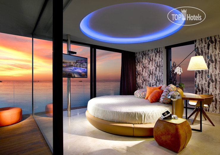 Еще один громкий, яркий, шумный, интересный отель на Ибице - Ushuaia Ibiza Beach 5*. Здесь есть свой клуб, где проводят грандиозные вечеринки (не забудьте освободить в гаджете много места для селфи, а в чемодане - место для нарядов, которые не отваживаетесь носить дома) с приглашенными диджеями. А еще - множество ресторанов, бассейн, спа...Номера, находящиеся в "башне" (так называется "жилая" зона отеля) радуют нестандартными интерьерами и множеством ярких деталей.