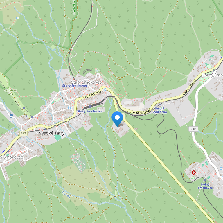 Расположен в 50 м от станции фуникулера на Гребиенок — главный центр катания на горных лыжах и санках в Старом Смоковце. Построенный в начале ХХ века отель бережно соблюдает традиции словацкого гостеприимства.