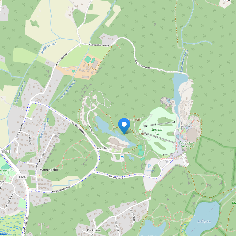 Расположение : Хельсинки - 25 км , Российская граница – 213 км , на берегу озера Корпилампи, на территории заповедника «Нуксио».