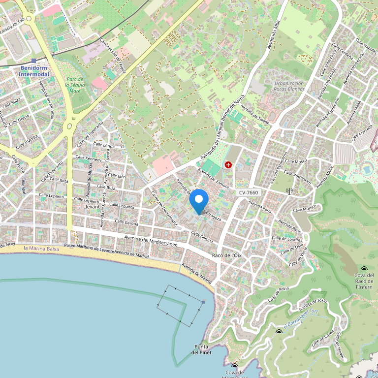 Отель расположен в городе Бенидорм (Ринкон-де-Лойкс), недалеко от пляжа Леванте, концертного зала Benidorm Palace и Акваландии, также неподалеку от башни Пунта-дель-Каваль и Моралес и Мундомар.