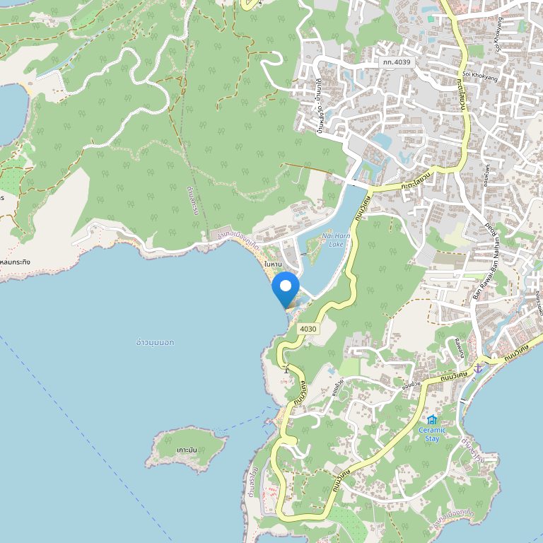Пляж Най-Харн c мягким, словно пудра, белым песком и спокойным морем отлично подходит для плавания и заслуженно считается одним из лучших пляжей в Азии. Изогнутая бухта в окружении джунглей и природы, гденет шума от гидроциклов или разносчиков товаров, пляж никогда не переполнен.