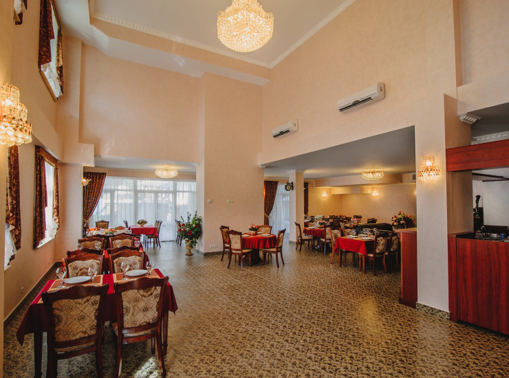 Главный ресторан с летней площадкой в Центральном корпусе общей площадью 160 кв.м рассчитан на 120-150 посадочных мест. В ретсоране Вам предложат блюда европейской, национальной кухонь и блюда фьюжен-меню. Данный банкетный зал прекрасно подойдет для проведения торжественных мероприятий в классическом стиле.