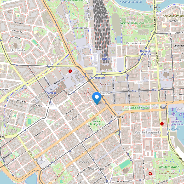 Расположение : отель расположен в центре города, напротив универмага "Стокманн", 300 м от ж/д вокзала, автобусная остановка 300 м . 18 км до аэропорта, до гавани 1,5 км .