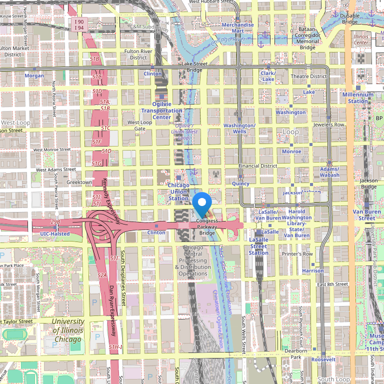 Месторасположение: Отель расположен в центре города Чикаго, в нескольких шагах от здания Чикагской торговой палаты, обзорной площадки Skydeck Ledge и Уиллис-Тауэр, недалеко от института искусств Чикаго и парка Миллениум.   Количество номеров: В отеле 610 номеров. Типы номеров: - Guest room, 1 King or 2 Double, номер площадью 40 м²; - Guest room, 1 King, No view, Low floor, номер площадью 34 м²; - Guest room, 1 King, Finance District view,  номер площадью 40 м²; - Executive level, Guest room, 1 King or 2 Double, номер площадью 40 м²; - Luxury, 1 Bedroom Suite, 1 King, номер площадью 84 м².