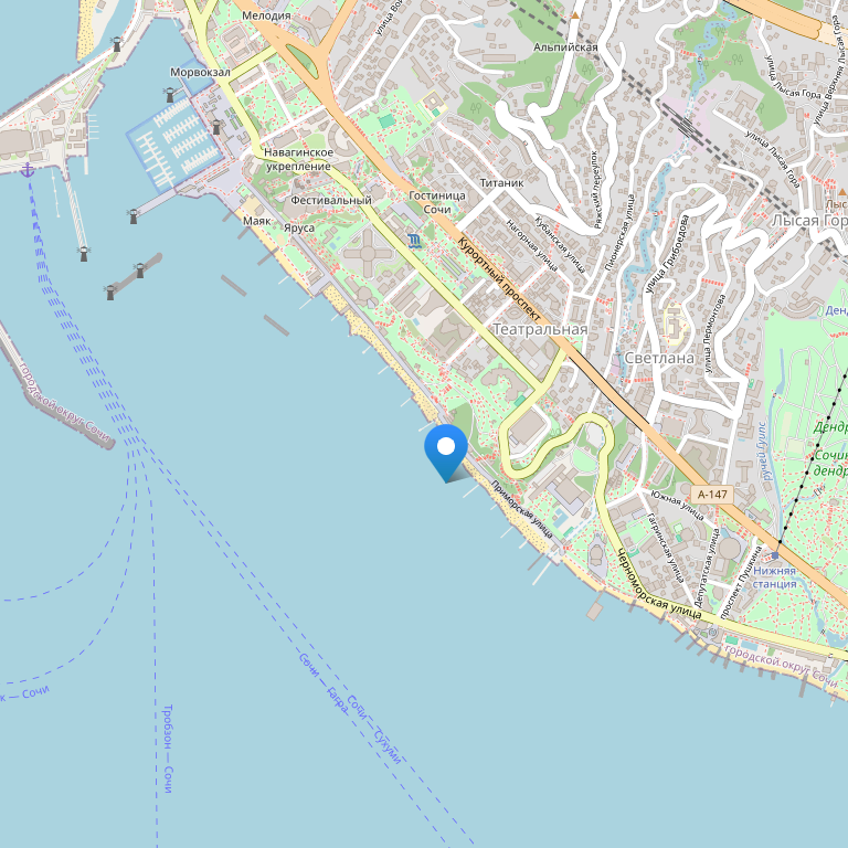 Санаторий "Черноморье" - высотное здание расположено на одной из главных улиц в центре г. Сочи на берегу Черного моря. С его балконов и террас открывается восхитительный вид на безбрежные морские просторы и на вершины Главного Кавказского хребта.