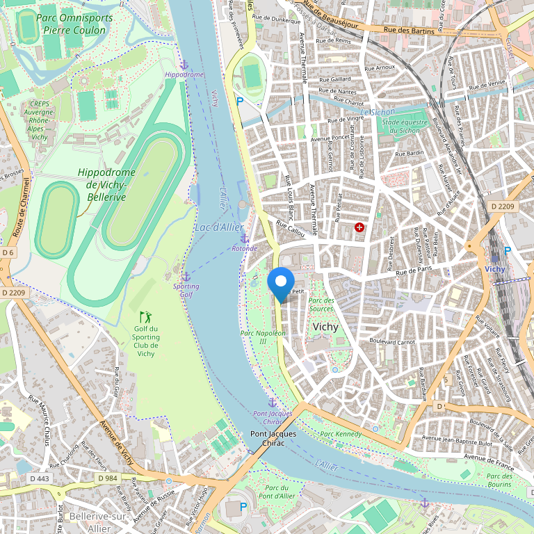 Отель расположен на берегу озера Алье, в центре города Виши, напротив престижного гольф-клуба Виши, не далеко от многочисленных бутиков. Железнодорожный вокзал находится в 3 минутах езды от отеля.
