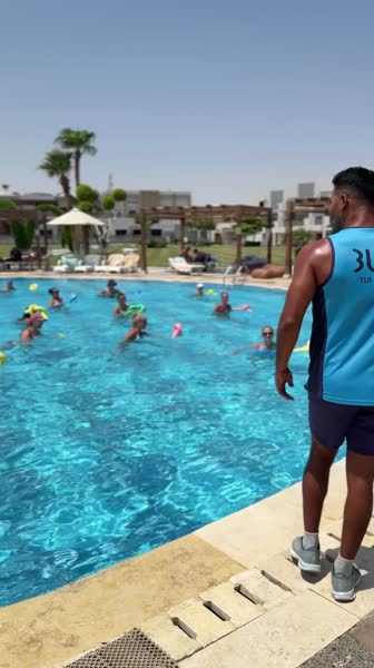 Днём нам особенно понравилась аквааэробика у бассейна — это не просто спорт, а настоящий заряд...