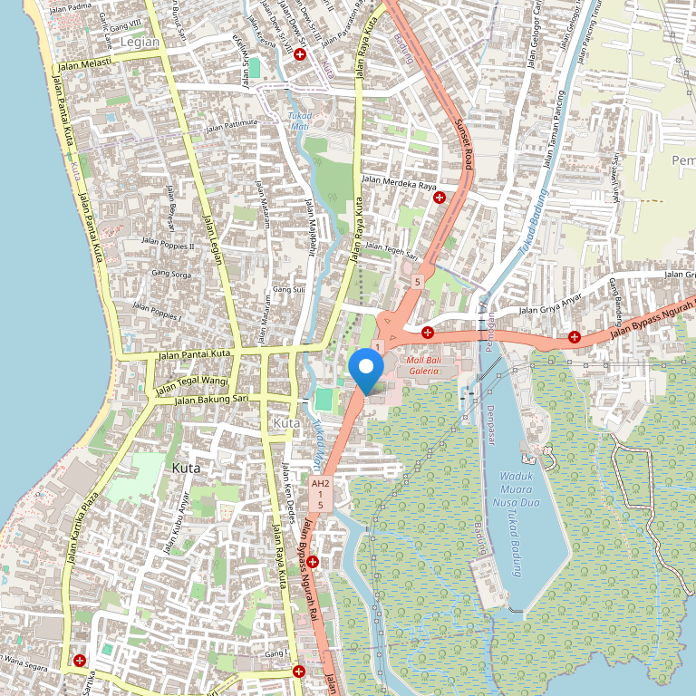 Отель расположен в пяти минутах езды от пляжа Кута, торговых площадей и международного аэропорта Нгурах Рай.