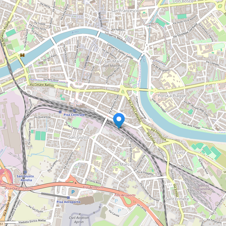 Отель расположен в центре города Пиза, на улице Via Puccini, в 30 метрах от железнодорожной станции и в шаговой доступности от торгового центра и престижных научных университетов. До аэропорта – всего 1 км (от железнодорожной станции каждые 10 минут идет автобус LAM ROSSA), до клиники Cisanello Hospital – 2,5 км (от железнодорожной станции каждые 10 минут идет автобус LAM BLU), до знаменитой площади Piazza dei Miracoli и клиники SANTA CHIARA – 2,5 км (от железнодорожной станции каждые 10 минут идет автобус LAM ROSSA).