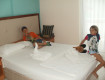 Номера: маленькие, но чистые,мебель новая, сейф в номере платный.Уборка каждый день, вот белье не меняли, только хорошо заправляли кровати. Но этот факт на отдыхе не отражается....