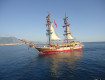 Прилетели в Турцию почти в два часа дня, до отеля добирались почти два с половиной часа, но не устали в дороге, т.к. гид постоянно что-то рассказывал. Заселили сразу. Номера стандартные, маленькие- но мы же не в номере прилетели сидеть. В номере одна двуспальная...