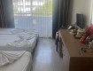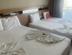 Заселялись 3-е взрослых, (родители с совершеннолетним ребенком), приехали после обеда. На неделю на рецепшене удалось договориться на 70$, (предлагалось 100) в нормальный номер с фронтальным видом на море, балкон со столиком и 2-мя стульями, сушилкой на боковой стене.