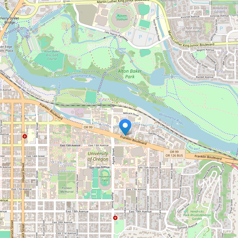 Отель расположен в городе Юджин (штат Орегон), недалеко от кампуса University of Oregon (0,1 мили) и Matt Knight Arena, в 7 милях от аэропорта Mahlon Sweet Field.