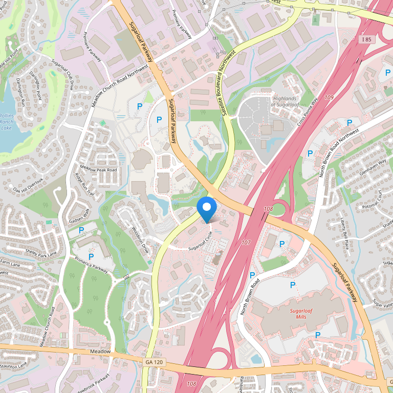Отель расположен рядом с шоссе 85, в оживленном и растущем пригороде Атланты Далут, в 35 милях от международного аэропорта Hartsfield Jackson, в 8 милях от аэропорта Gwinnett County и в 15 милях от аэропорта Dekalb-Peachtree. Рядом с отелем находится Gwinnett Center & Arena, а также множество магазинов в торговых центрах Discover Mills Mall и Mall of Georgia. Недалеко от отеля расположены многочисленные офисные парки и корпорации – такие как Liberty Mutual, NCR & Cisco Systems.