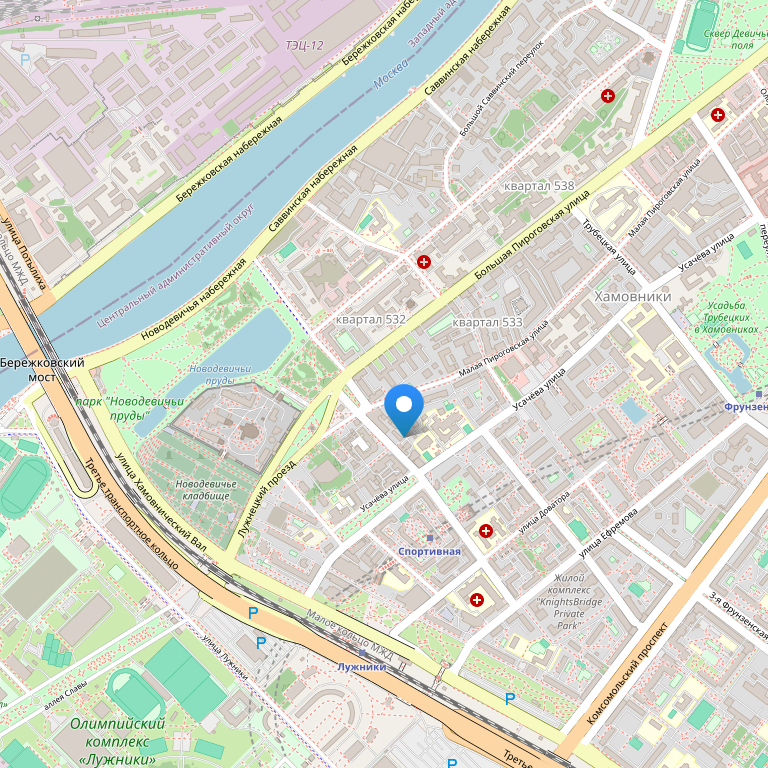 В двух минутах пешей прогулки располагается станция метро Спортивная - добраться до центра столицы и насладиться культурным наследием Кремля можно всего за 10-15 минут.