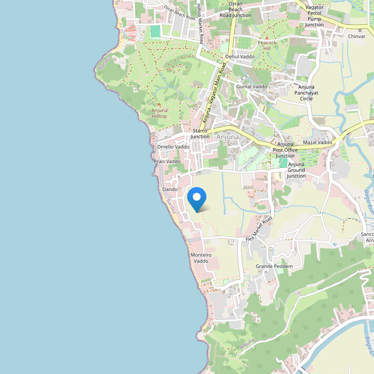 Отель расположен всего в 100 м от известного пляжп Анджуна и в нескольких минутах от популярных пляжей пляжей Бага и Калангут, в 20 км от железнодорожной станции Thivim, в 10 км от автобусной станции Mapusa, в 50 км от аэропорта Даболим и в 20 км от города Панджим.