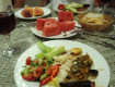 еда на любой вкус:салаты,суп,горячее,фрукты,овощи.