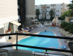 При отеле бассейна нет,зато до пляжа 1 минута,лежаки,зонтики бесплатно.