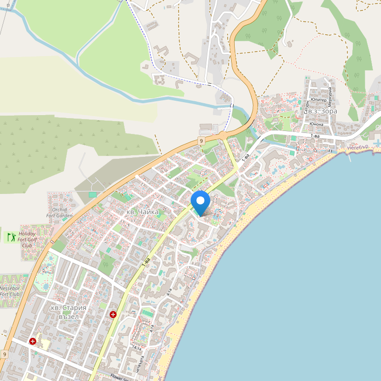 Находится на 1 линии в 50 м от пляжа в северной части Солнечного Берега. Новый шикарный отель, построенный в 2004 г.
