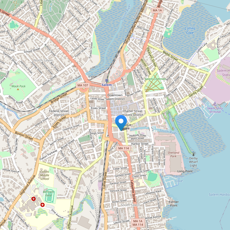 В центре Салема, Массачусетс, в 16 милях от аэропорта Бостона Logan Airport, отель расположен в нескольких минутах ходьбы от всех достопримечательностей Салема, музеев мирового класса, таких как: Salem Witch музей, Peabody Essex музей, набережной и морского порта, с многочисленными ресторанами.Из Салема можно добраться в Бостон или другие пригороды,хорошо развито железнодорожное сообщение, работают автобусы и паромы (в сезон).
