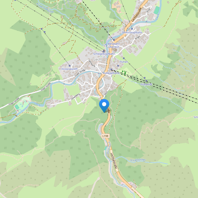 Отель расположен во всемирно известном Лехе у подножья не менее известной горы Арльберг - "колыбели лыжной езды" непосредственно у подъёмника, с 84 лифтами, приготовленными лыжными спусками длиной 280 км и спусками по глубокому снегу длиной 180 км.