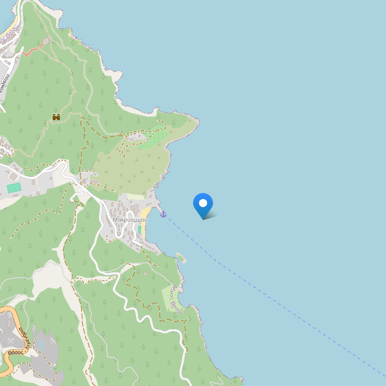 Отель Makryammos имеет многолетнюю историю и принимает туристов с апреля по октябрь. Отель занимает 30 акров живописной лесной территории у прибрежной зоны.