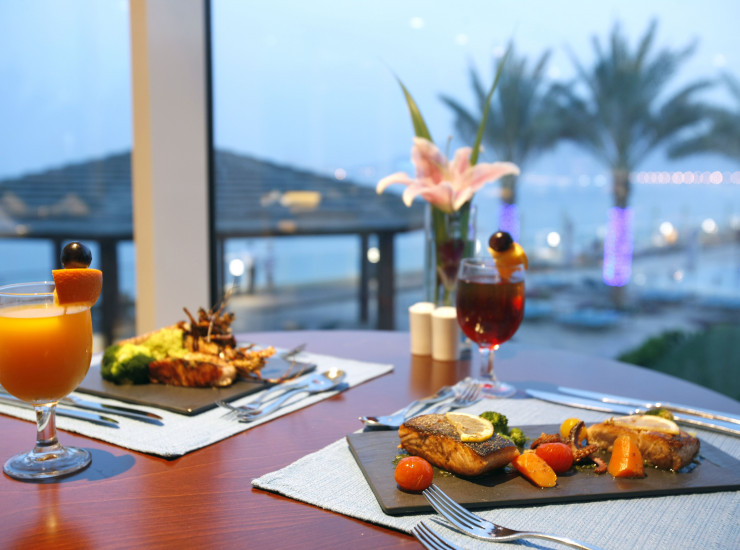 Главный ресторан - Al Murjan, с панорамными окнами и видом на бассейн и пляж, здесь подаются блюда международной кухни на завтрак, обед и ужин. По вечерам звучит живая музыка. К вашим услугам не только шведский стол, но и возможность сделать заказ по меню.