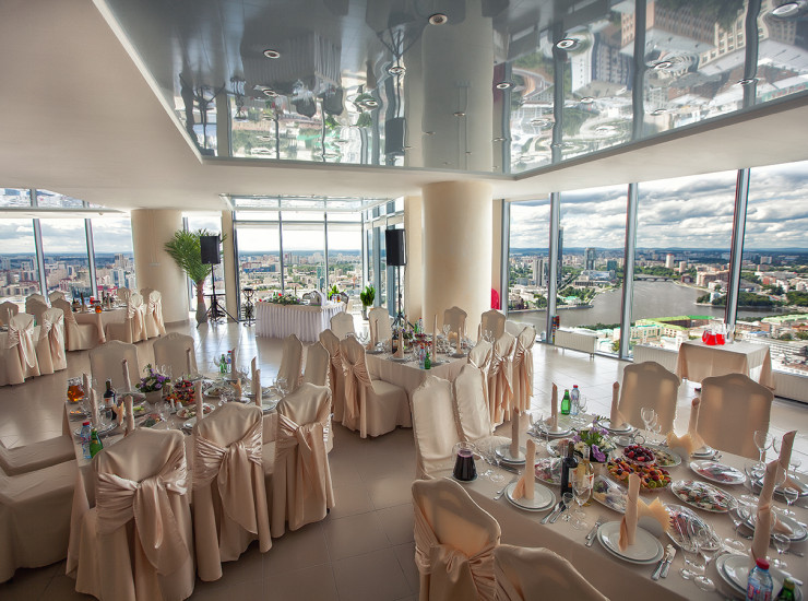 Также мы рады предложить залы с панорамным видом на город Екатеринбург вместимостью от 100 до 150 человек. Располагаются они на 37, 50, 51 этажах.