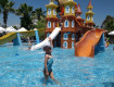 Территория не очень большая, но вполне достаточно. Есть водные горки для взрослых, отдельно для детей (причем очень хорошие), для маленьких детей есть "лягушатник" (неглубоко, мини горки, это все под навесом, вокруг лежаки). Пляж хороший (при нас лежаки которые...