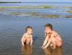 У берега мелко и очень далеко и только до обеда (прилив - отлив). Наш ребенок 2-х лет с удовольствием плескался около пляжа.