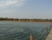Пирс длинный, идти в темпе минут 10 до конца. По пути есть остановка, где море по грудь и можно спокойно, без волн...
