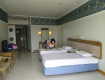 Номера: скромные, мебель старая. Балкончики небольшие. Вид из номера у нас был на соседний отель и боковой вид на море, второй номер выходил на поле))