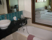 Порадовало сквозное окно со ставнями между комнатой и ванной. Можно лежать в ванне с коктейлем и смотреть ТВ или общаться.