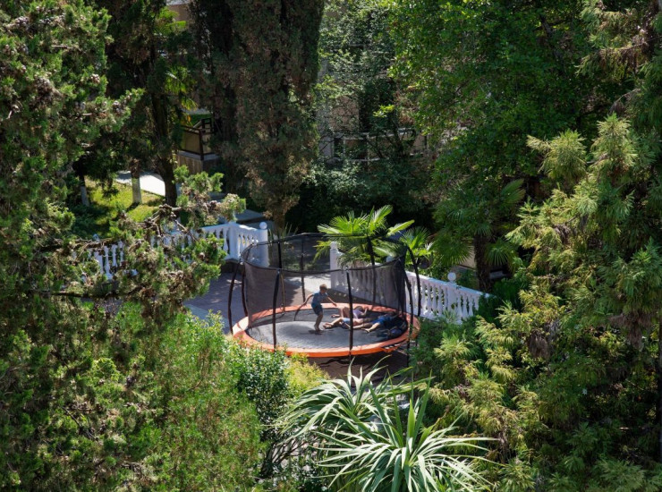 Территория отеля расположена на первой береговой линии. Дорога к мелкогалечному оборудованному пляжу, который находится всего в 150 м от корпусов, проходит по субтропическому парку и ведет по небольшому мостику через горную речку. Пляж имеет пологий спуск в море, что будет комфортно для отдыха с детьми. Имеется прокат водной техники (яхта, катер, скутер, катамаран). С набережной открываются виды на Кавказские горы и бескрайние просторы Черного моря. Уникальный микроклимат, созданный благодаря лесному массиву и морскому воздуху, подойдет для восстановления жизненного тонуса и способствует оздоровлению дыхательной системы.
