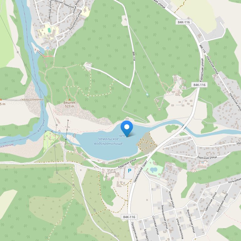 Усадьба находится в курортной зоне Республики Алтай в экологически чистом районе у подножия горы Верблюд, в 10 минутах ходьбы от одной из самых посещаемых достопримечательностей Чемальского района - Чемальской ГЭС, излюбленного места туристов, центра отдыха и развлечений.