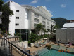 Территория не большая, зеленая. 3 бассеина, мини спортзал, ресторан с тематическими ужинами, платный доступ к интернету.