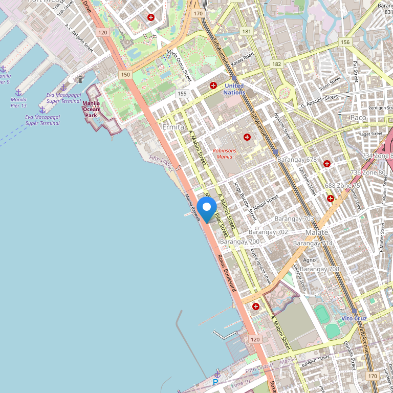 Отель стоит рядом с Манильской бухтой на бульваре Роксас, в самом центре Манилы. Торговые центры, галереи, культурный центр, выставочные центры, спортивные комплексы, музеи и парки – всего в десяти минутах езды от отеля. В самом отеле есть все, что нужно для прекрасного отдыха. Современный, прекрасно оборудованный spa-центр отеля предлагает различные оздоровительные программы, занятия с персональным тренером, косметические процедуры.