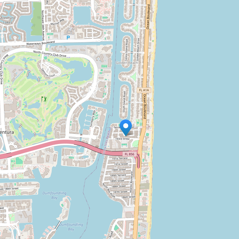 Располагается на пляже в городе Санни-Айлс-Бич, недалеко находятся Элитный торговый центр Aventura Mall и Gulfstream Park.