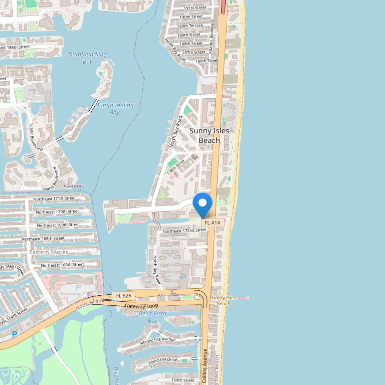 Расположение: Отель находится в северной части Майами в районе Sunny Isles Beach. До фешенебельного района Бел–Харбор с многочисленными бутиками – 10 минут езды на машине, до района Арт-Деко (South Beach) с знаменитыми ночными клубами, барами, ресторанами - 20 минут.