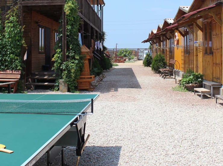 Размещаются наши гости в экологических деревянных домиках и коттедже. Зайдя в номер, вы увидите все необходимое для вашего комфортного проживания: необычная обстановка с удобными кроватями на время заменит вам ваш привычный мир. Наличие кондиционера создаст комфорт в любое время суток, а наличие телевизора и зоны WI-FI не даст скучать даже полуночникам. И, хотя еще не все номера оснащены отдельными санузлами, пусть вас это не смущает. Современные душевые и туалетные комнаты находятся рядом с вашими номерами. И, поскольку главные гости это дети, то и чистоту и гигиену мы гарантируем. Горячая и холодная вода у нас постоянно. Может быть вы не найдете у нас те условия, которые вы имеете круглый год у себя в квартирах, но зато у нас, в гостевом доме "Жемчужина" Заозерное, едва открыв глаза, проснувшись утром, вы окунаетесь в мир природы с пением птиц, утренним рассветом, росой на траве. И первое, что хочется сделать - это пробежаться к морю и окунуться в его утреннюю свежесть, пока оно еще не тронуто летним зноем.