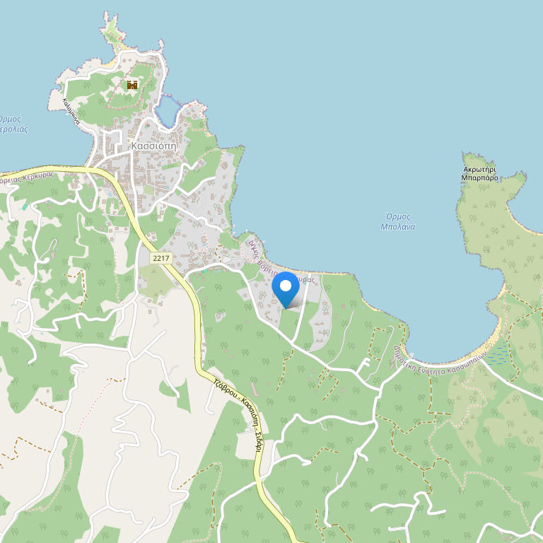 Отель расположен в заливе Kassiopi на острове Корфу, в 75 метрах от пляжа Сукиа. Расстояние до международного аэропорта Корфу составляет 35 км.