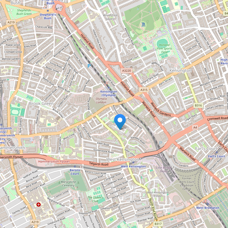 Расположен на одной из наиболее фешенебельных торговых улиц города, неподалеку от выставочных центров Olympia & Earls Court, в 15-и минутах ходьбы до станции метро "High St. Kensington", в 3-х минутах ходьбы до ближайшей автобусной остановки. К числу находящихся поблизости достопримечательностей также относятся: Kensington Gardens, Hyde Park и Royal Albert Hall. Отель идеально подходит для тех, кто любит активно участвовать в жизни большого города.