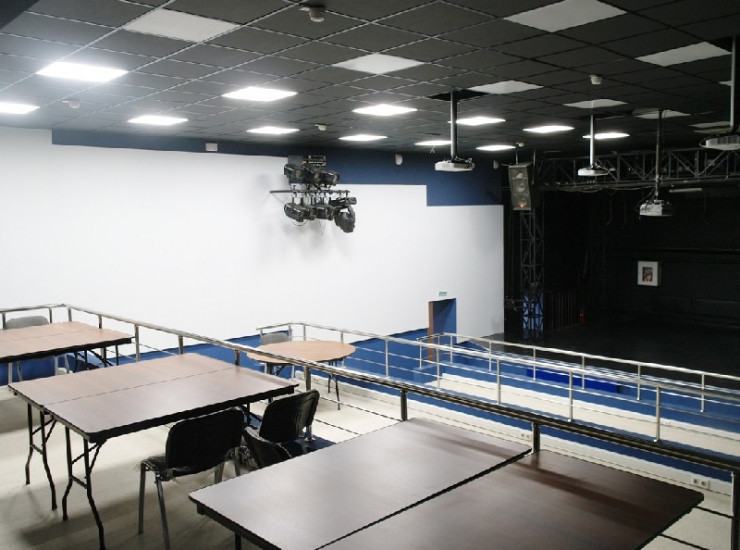 Трехъярусный конференц-зал со сценой в здании Конгресс-холла. Площадь 300 кв.м. Максимальная рассадка 230 человек театром. Есть возможность воспроизведения фото и видео материалов с проекцией на стены.